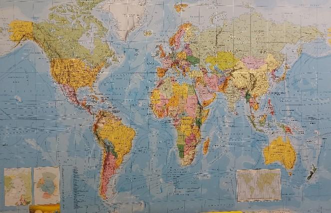 Žemėlapis, Didelis, spalvingas. Išspausdintas, nuspalvintas, pakabintas.