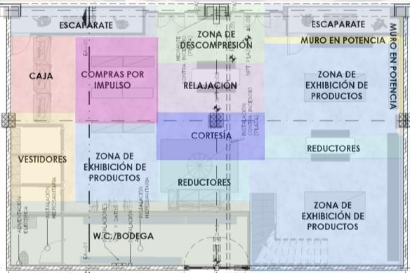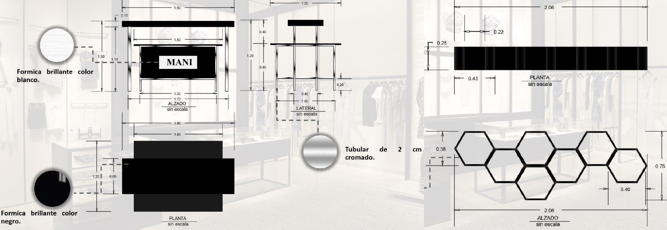 Esto se logrará partiendo de la creación de una marca comercial "MANI"; la cual venderá sus productos en dicho local, planteando la organización de los espacios y zonificación de estos de acuerdo con los estudios de recorridos que puede hacer el usuario y que mejor comodidad le brinden (layout), considerando también el aspecto del visual merchandising para potencializar las ventas y la composición y decoración de los elementos arquitectónicos como muros, pisos y plafones.