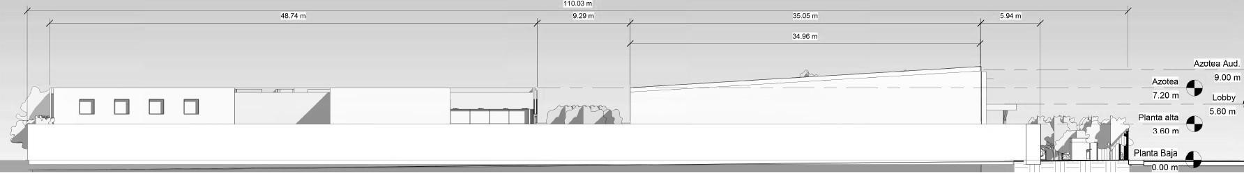 Sistema losacero en entrepisos, columnas y trabes metálicas, muros divisorios internos y cubierta de policarbonato soportada con perfiles tubulares metálicos en el Lobby.