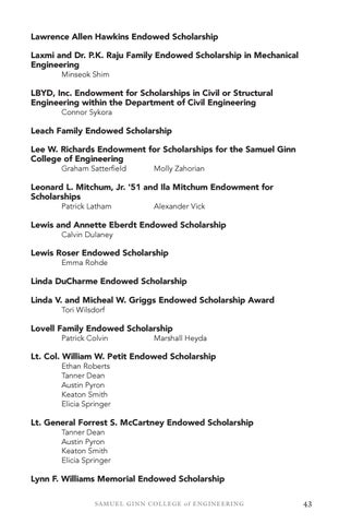 Leach Family Endowed Scholarship Lee W. Richards Endowment for Scholarships for the Samuel Ginn College of Engineering