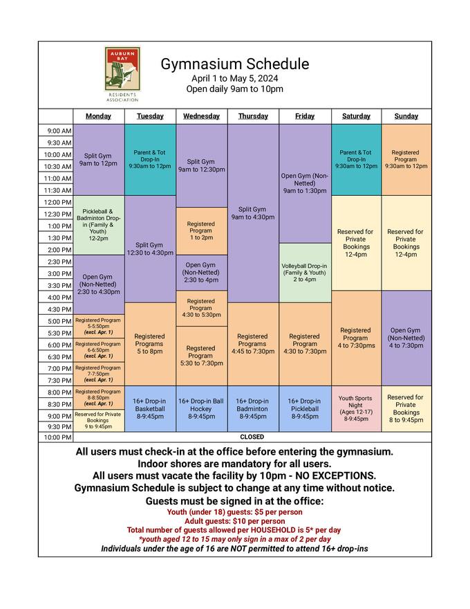 GymnasiumScheduleissubjectto changeatanytimewithoutnotice. Pleaserespectthedesignateddropintimes.