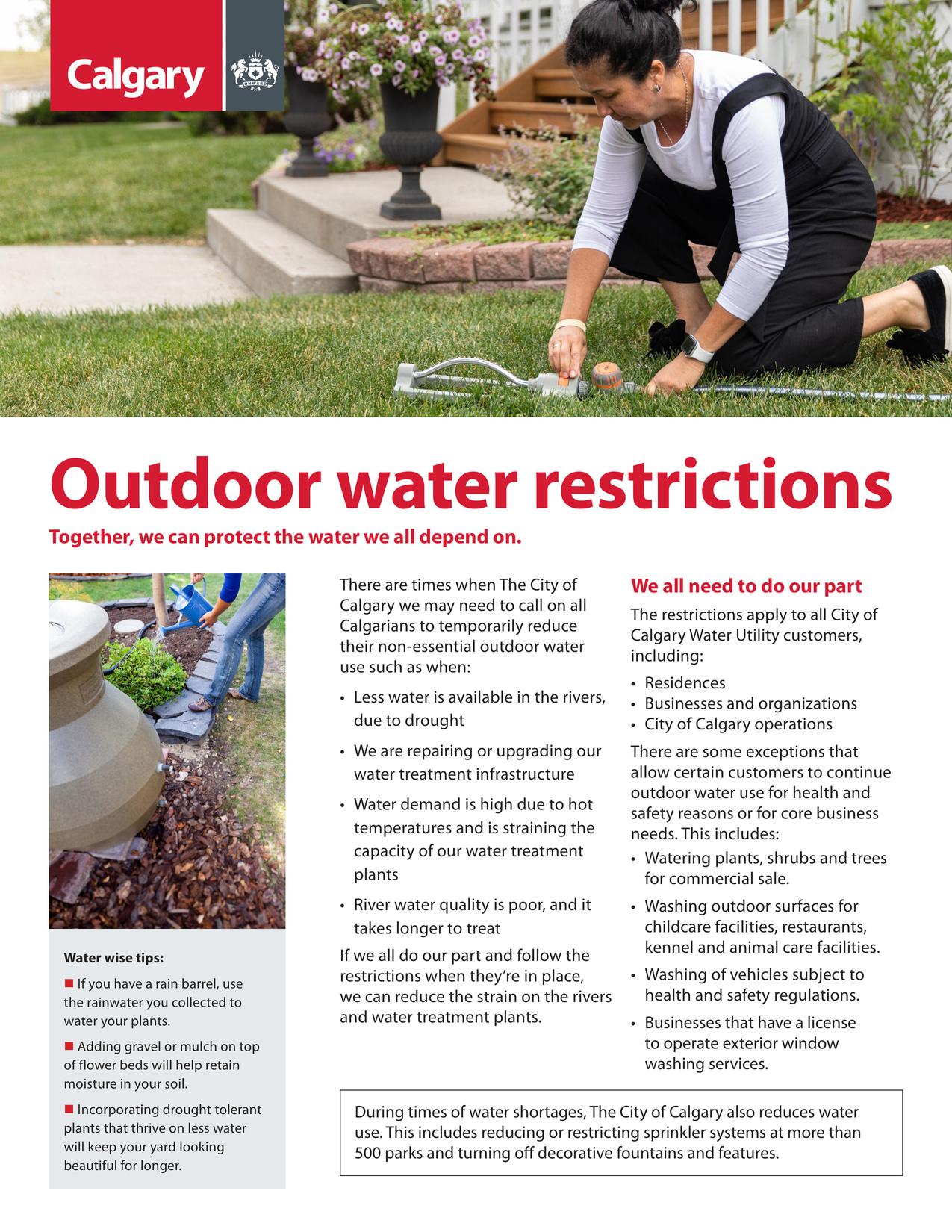 Presently,theCityofCalgaryfindsitselfinadryspell,withtheentire provinceexperiencingdroughtconditions.Forecastssuggestthat thisdroughtwillpersistintothesummermonths.Takingproactive measuressuchasinvestinginrainbarrelsavailablethroughGreen Calgary,transitioningtoxeriscapingbyincorporatingdroughttolerantplantsinyouryard,andrevisingannualplantingdesigns toconservewaterarerecommendedstrategiestomitigatethe impactofthedrought.