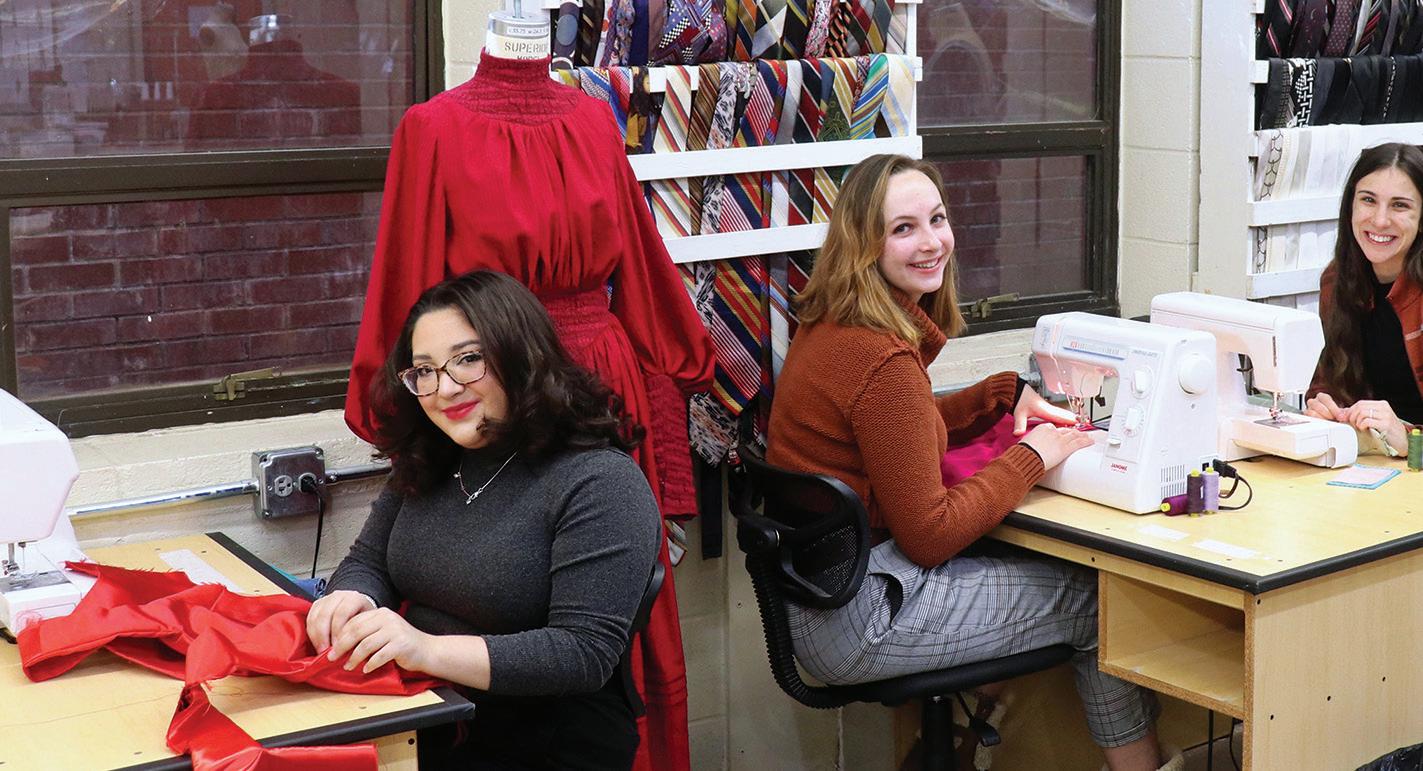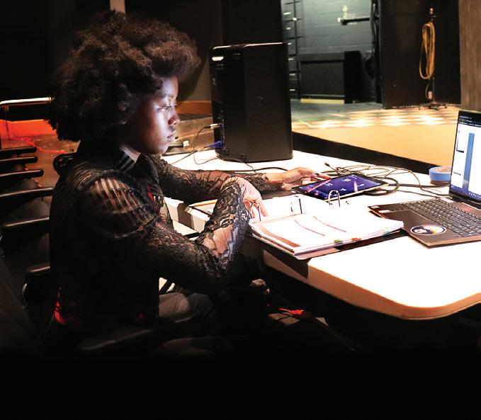 Top, L to R: Presley McQuiddy-Gasparlin and Elle Hartman work in the costume studio. Middle: Daisha Flint helps run rehearsal as an assistant stage manager.