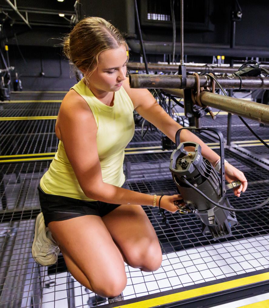 Across 5 major degree tracks and 3 different minors, our students engage daily in the rigorous hands-on work of the theatre. They construct sets, call shows, sew costumes, create designs, analyze texts, choreograph dances, devise new works, build props, focus lights, block scenes, conduct research, score scripts, and everything in between.