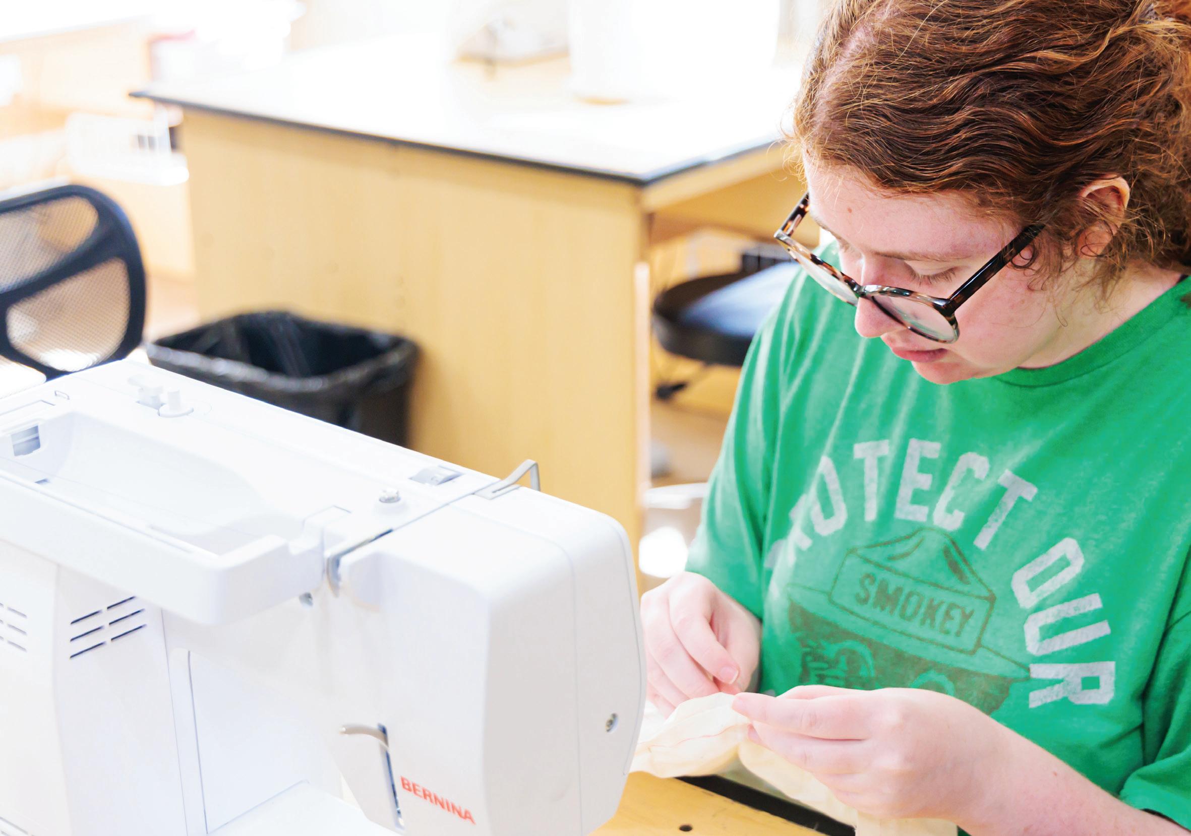 Left: Lily Sosebee works in the costume shop; photo by Henry Eiland. Right: Tessa Carr’s photo by Jessi Rogers.