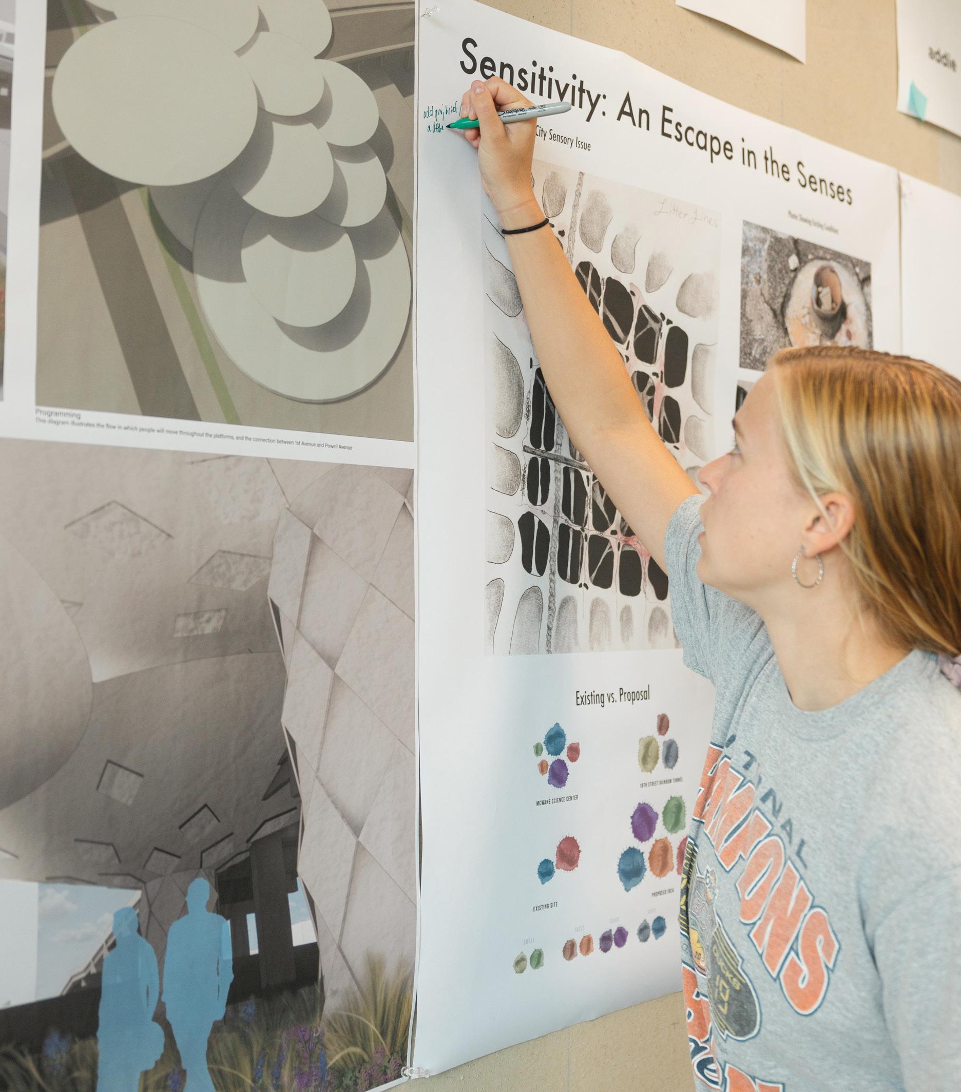 With a small student-to-professor ratio, students have the opportunity to experience project-based learning in the setting of a small classroom and studio while attending a large university.