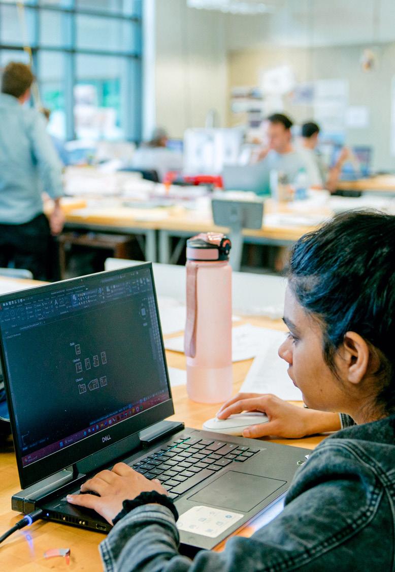 In this focused design degree, students learn core knowledge of design and construction disciplines related to human-designed environments. Students use design and systems thinking to study robust systems that make up the environments where we live our lives. They study climate adaptation and infrastructure that serves more than one purpose while ensuring awareness of sustainable practices from a local and global context.