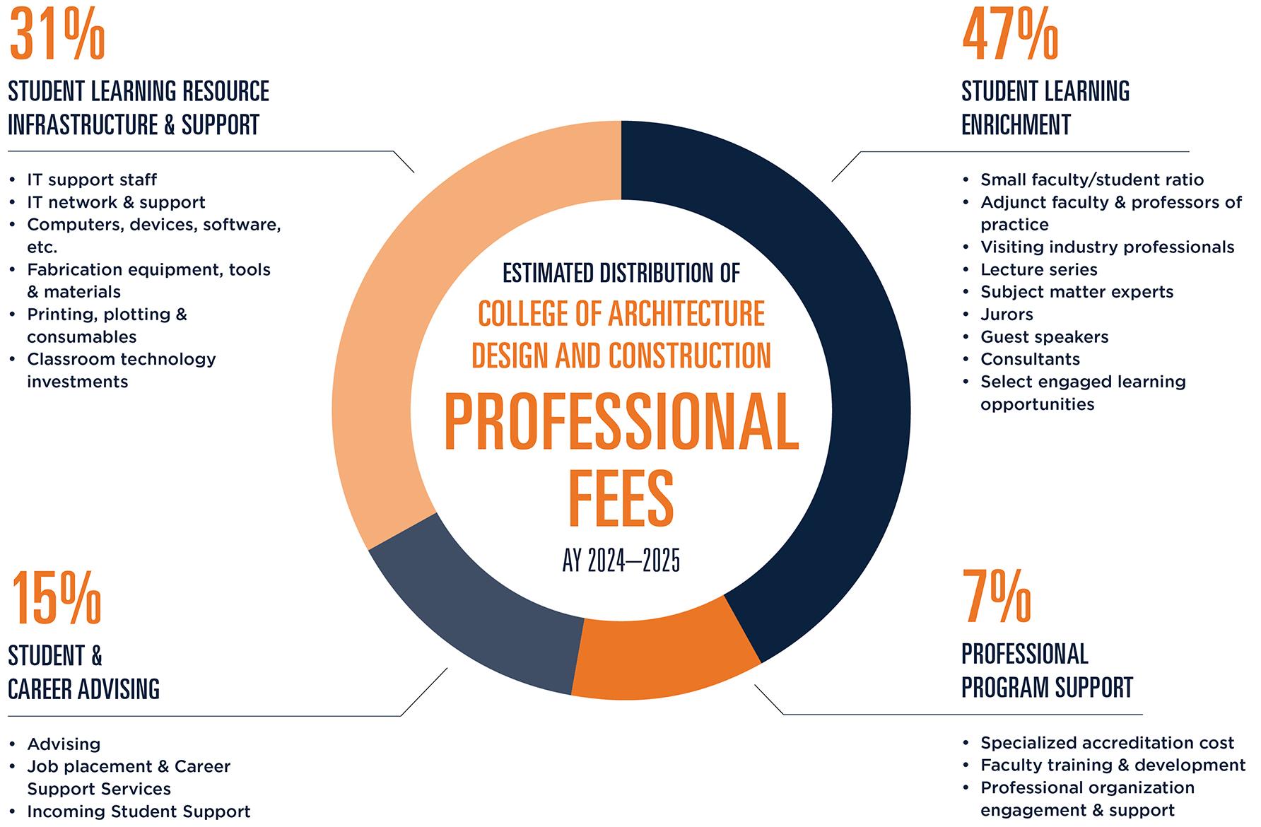 Professional programs are inherently more expensive to run than non-professional programs. They require more space, more personnel, a lower student-toteacher ratio, access to a higher level of technology than most disciplines, and incur significant costs associated with achieving and maintaining accreditation from the appropriate specialized, national agencies. As a result, the College of Architecture, Design and Construction (CADC) charges a professional fee to partially defray the difference between state funding and tuition, and the actual costs of our professional programs. Within each program, a professional fee charge of $2,160 is tied to enrollment in specific trigger courses. During semesters when students are enrolled in these classes they will be charged the professional fee. Each curriculum has its own trigger courses as noted by a triangle on the program’s CADC curriculum model.