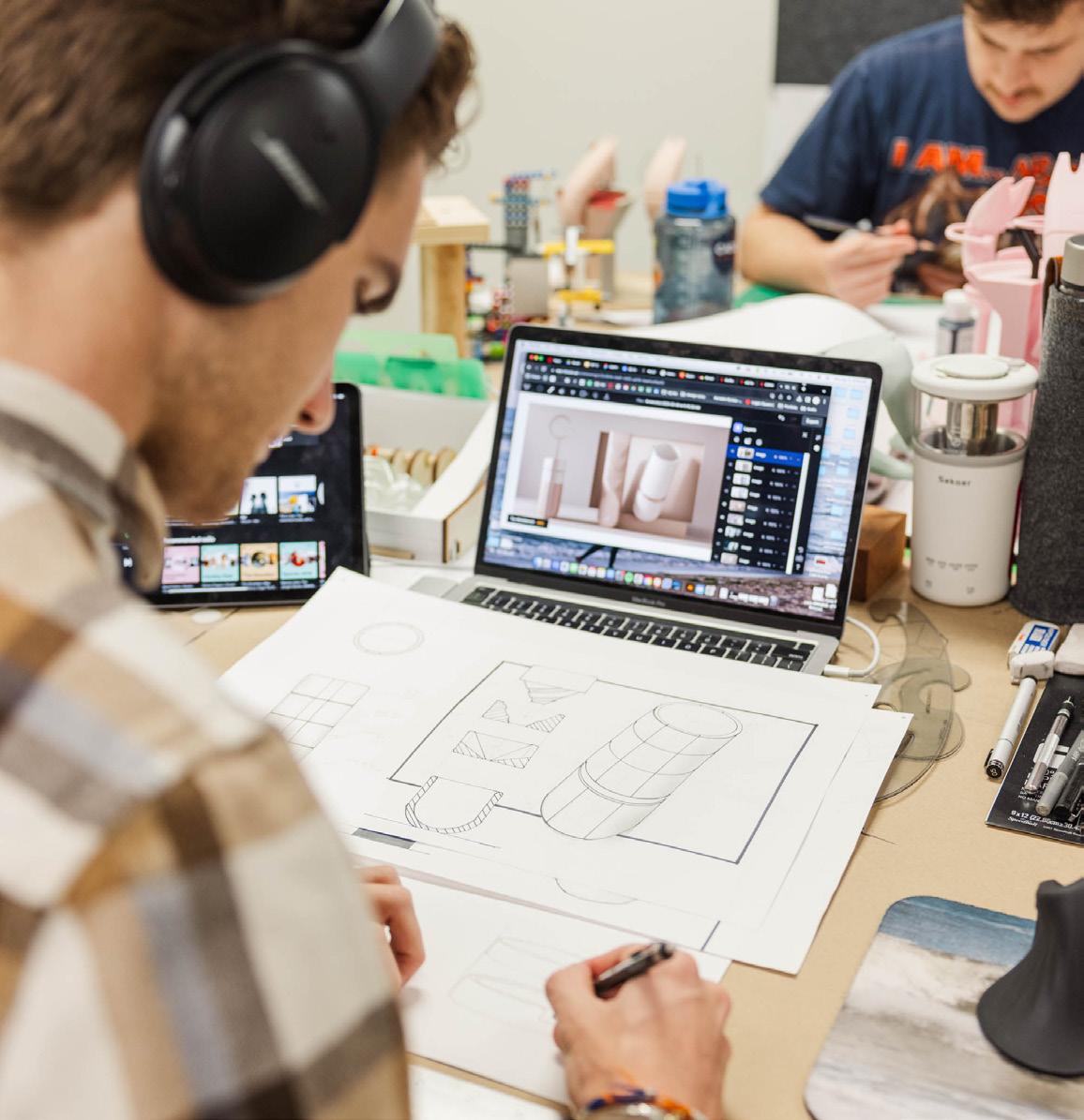 Auburn’s Industrial Design program is one of the most established in the country. Industrial Design students learn the principles of human-centered design, engineering, ernonomics and design thinking They acquire technical skills such as computer-aided design, prototype fabrication, exploratory sketching, perspective drawing, and graphic design principles and tools. Students are introduced to design methods, creative and critical thinking, color theory, visual communication, materials and manufacturing, consumer psychology, generative artificial intelligence, and environmental implications of design decisions.