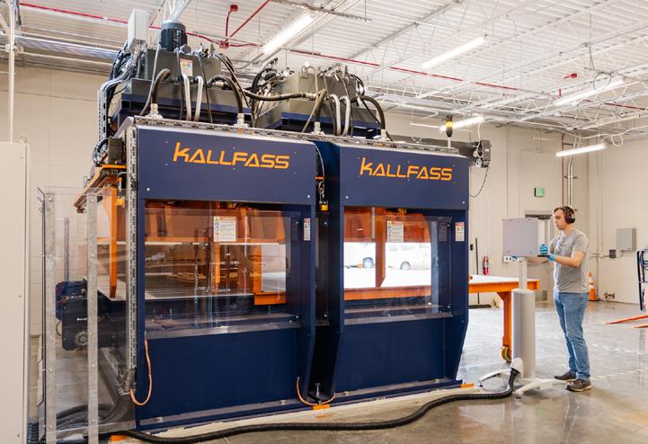 ABOVE & LEFT: In the CADC Research Shop, timber is layered with adhesives and placed in the CLT press to dry and strengthen.