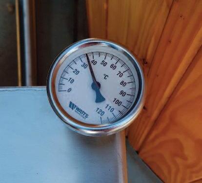 The stove is equipped with a temperature gauge to display the temperature of the water in the water jacket around the stove and a pressure relief valve which will activate should any pressure build up in the stove . Please use the thermometer located in the retreat to ensure a comfor table water temperature .