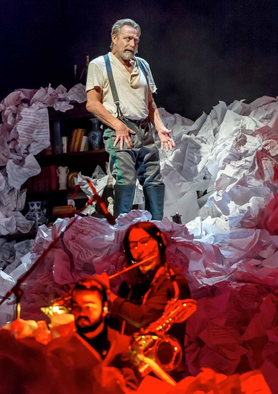 Even at the end of the play, when Mozart presents his requiem to Salieri, Salieri eats it! It felt right that Salieri would be obsessed by paper – that is, the music of Mozart – and that his house would be filled with angry, destroyed remnants of Mozart’s music.”