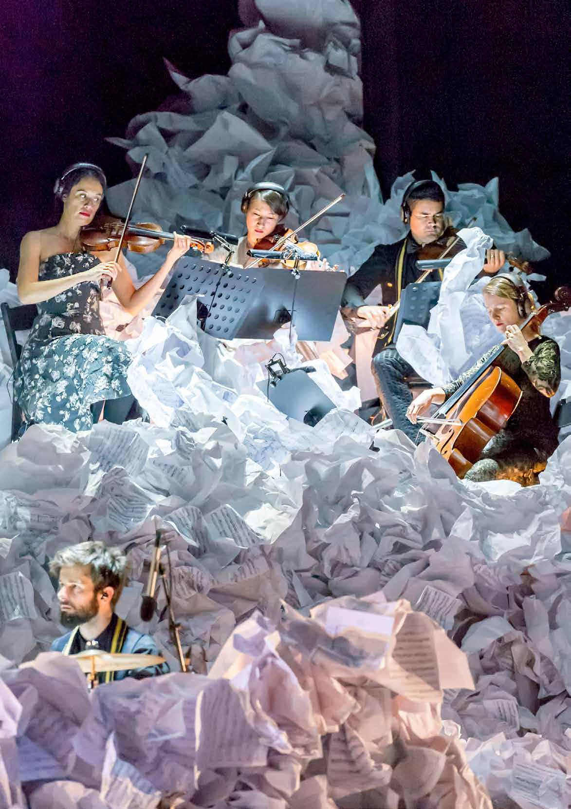 “The idea of the set is that all you see is Mozart’s manuscripts – balled up bits of white paper.”