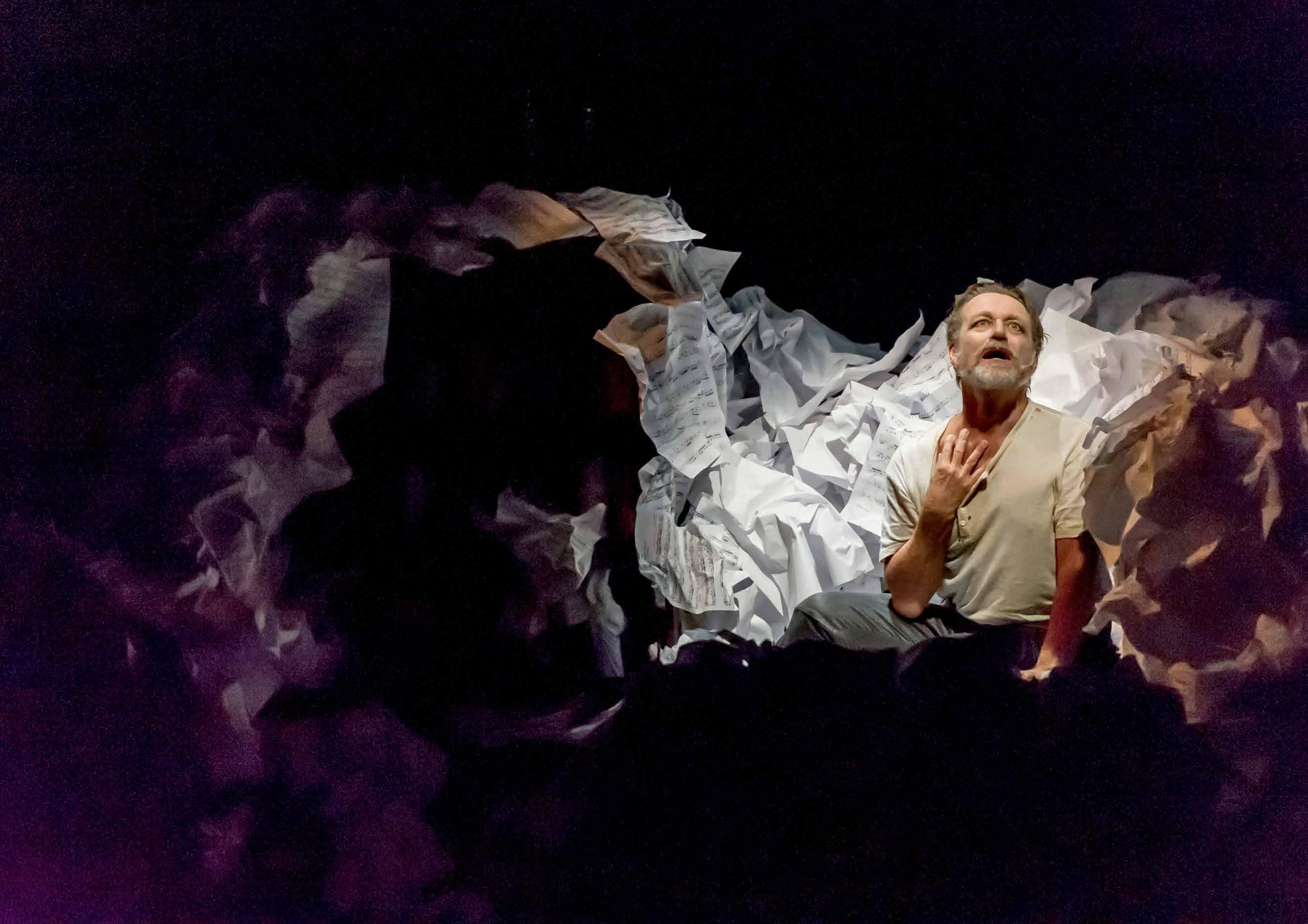 for Salieri, with paper flying up and out of the set. Taking it away. And coming down - balls of paper rolling down as the Opera Singer sings. She’s on top of a pillar, with paper falling.