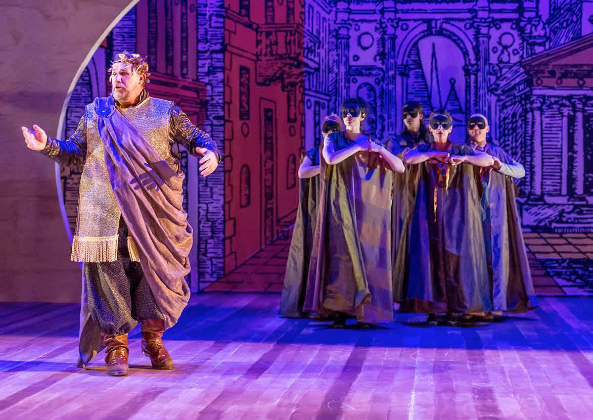 “DANCE is used to help with the characterisation and energy in some songs. For example, there are a couple of songs the characters sing as part of their Playhouse Theatre performance. Choreography is also used for a couple of sequences where they’re ‘off-stage’, when they’re preparing their show –those scenes are more like choreographed chaos, with lots of rapid prop movement that makes it look like they’re rehearsing. The two pieces that are in the ‘play within a play’ are more formal. We’ve kept that quite oldfashioned, so it has a real difference to what they do
