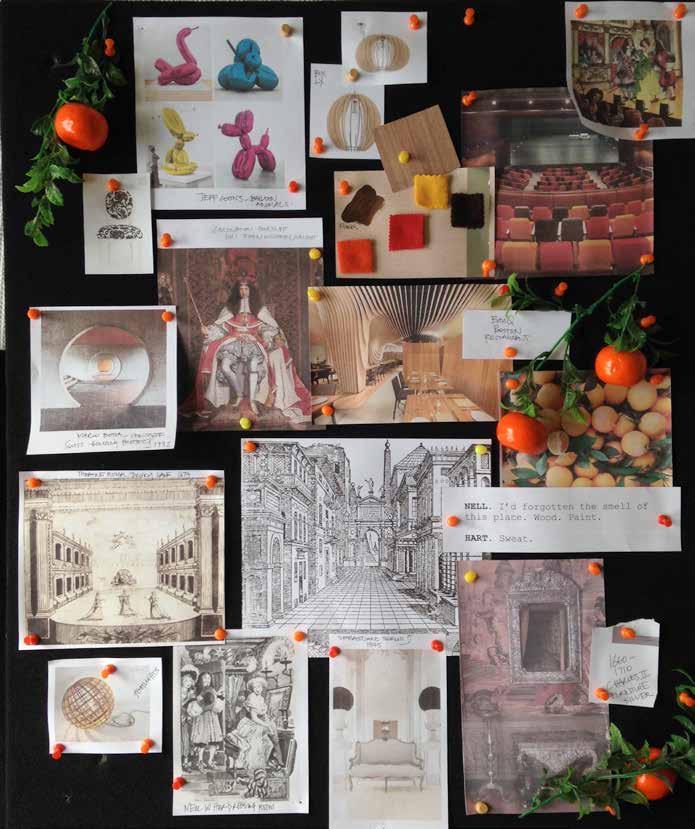 cooler palette – open white lights (with no colour gel in them), and steel blues. This creates a more formal setting, and highlights the silver used in the set and costumes. When Nell moves into the palace, some of her colour palette will be brought in too.