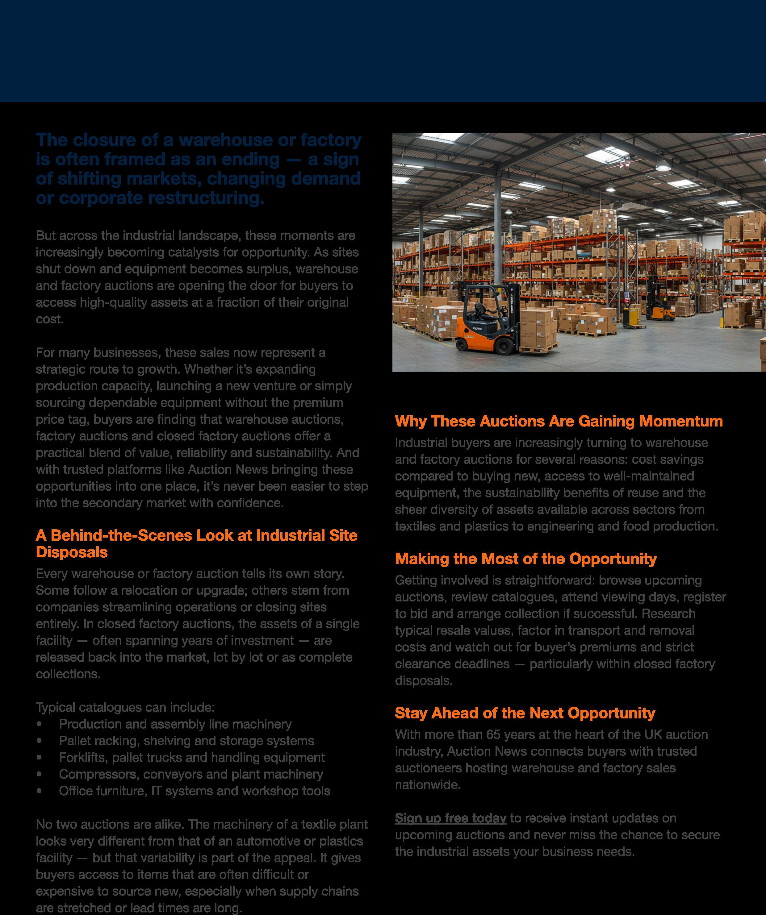 Auctioneers in plant, machinery, salvage and vehicles need flexibility and speed to market. Fast consigning and inventory management, powerful image capture and management tools, easy invoicing, pay-outs and pass out paperwork, all in one place