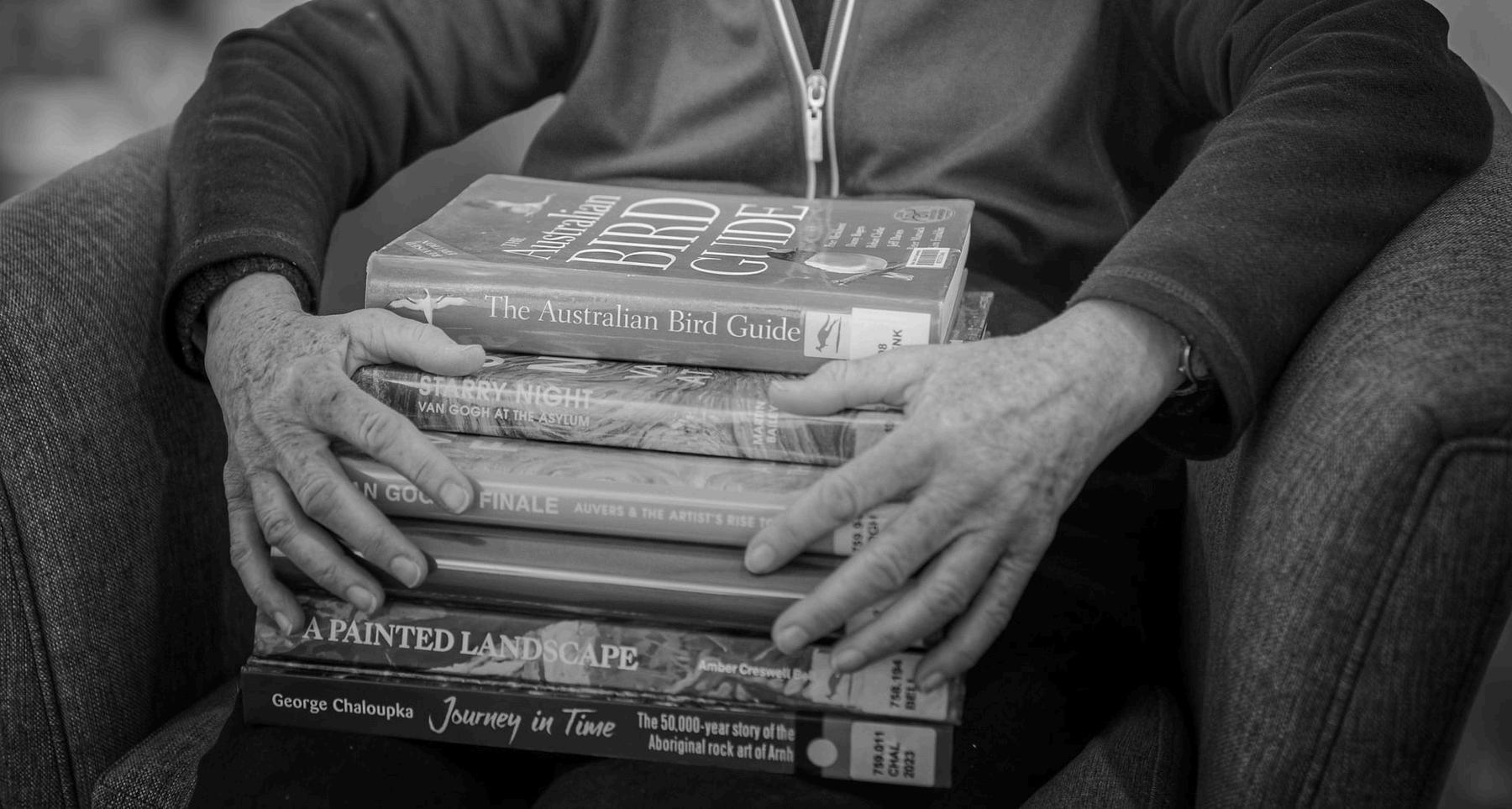For her portrait, she chose a small stack of favourite books—ones that held meaning for her. A quiet reflection of the stories her hands have held, and helped shape.