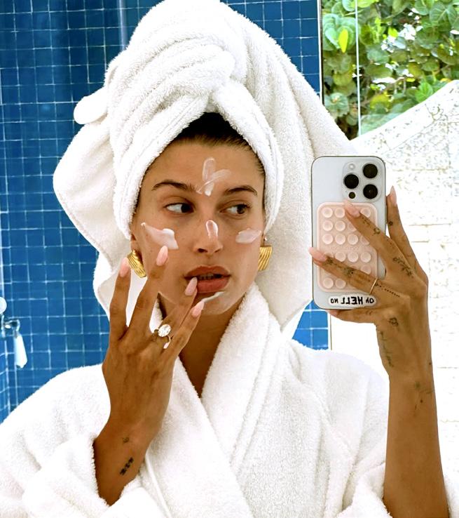 De vrouw van Justin Bieber beschouwt haar highlighter als heilige graal. ”Ik hou van een glowy huid en gebruik daarvoor een highlighter. Op mijn jukbeenderen, een beetje op mijn neus, op de cupidoboog en op mijn oogleden. Soms doe ik ook een beetje op de crease van mijn ogen.”