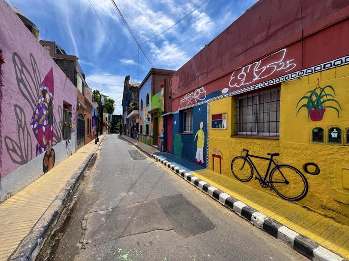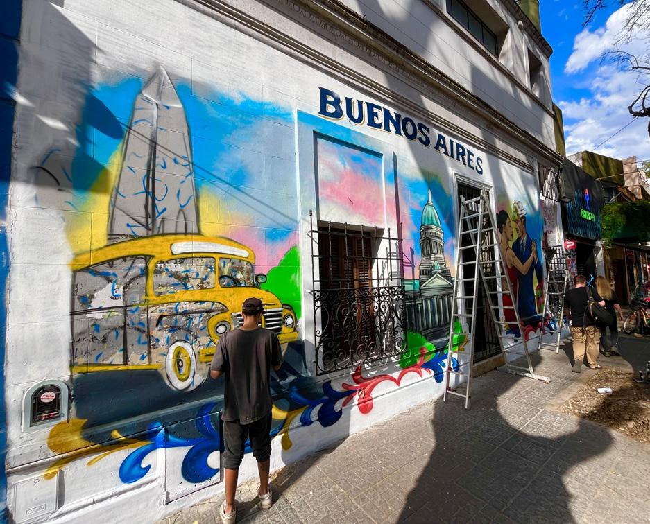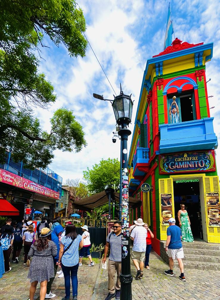 Kleurrijk Caminito in La Boca De wijk La Boca staat bekend om de kleurrijke huizen en tal van straatkunstenaars - en dan vooral Caminito, omschreven als een levend kunstwerk. Vroeger was het een arme immigrantenwijk bestaande uit hout en golfplaten, die met restjes scheepsverf werden opgevrolijkt uit noodzaak. Nu zijn de kleurrijke gevels een cultureel symbool: een teken van creativiteit, trots en identiteit van een wijk.