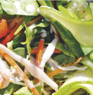bleekselderij, in dunne boogjes • 300 g snoepgroente-tomatenmix, gehalveerd • 150 g minimozzarella, uitgelekt • handje zwarte olijven, in plakjes • 50 g babyspinazieblaadjes • 100 g rauwe ham, in plakjes • 2 el geroosterde