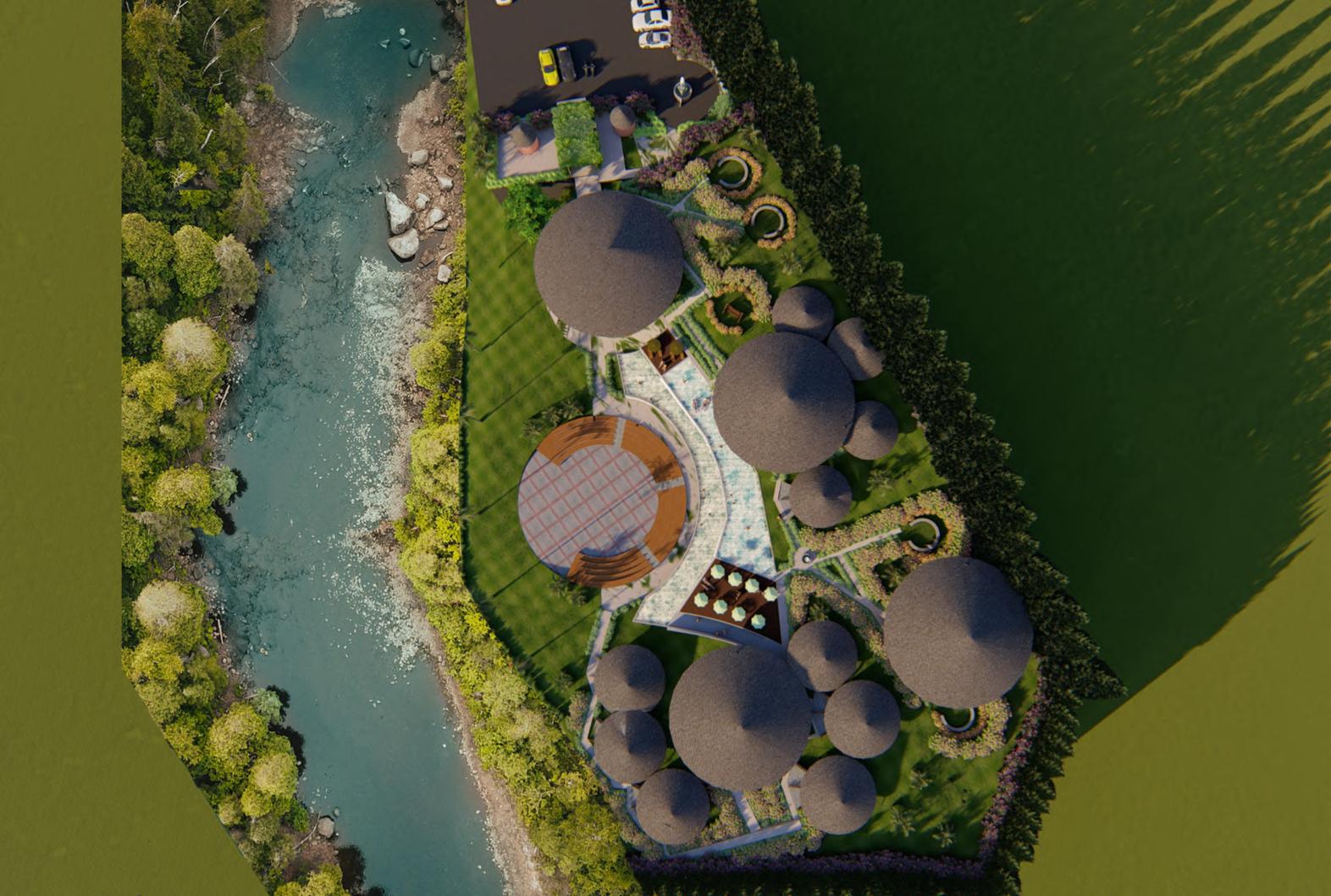 Information 1. Parking area 2. Entrance 3. Guard Room 4. Service Room 5. Lobby and Restaurant 6. Garden 7. Living Room 8. Bungalow (Bedroom) 9. Amphitheatre 10. River 11. Swimming Pool 12. Spa 1 2 3 4 5 6 7 8 8 8 8 9 11 10 12 7 8 8 8 8 8 8