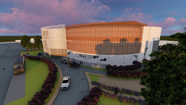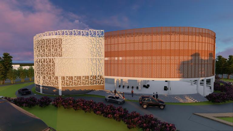 The concept for this performing arts building is taken from the nature of a traditional musical instrument of West Java, namely angklung. The angklung musical instrument was chosen because this performance building is dedicated to the performance of the angklung orchestra, a traditional art that is packaged in a modern way. The nature of the angklung that is taken as a theme is the dynamic nature, where the angklung must be played by vibrating. This is also what underlies the naming of this performance building, namely ngurulung (vibrated) which is one of the terms in the angklung game.