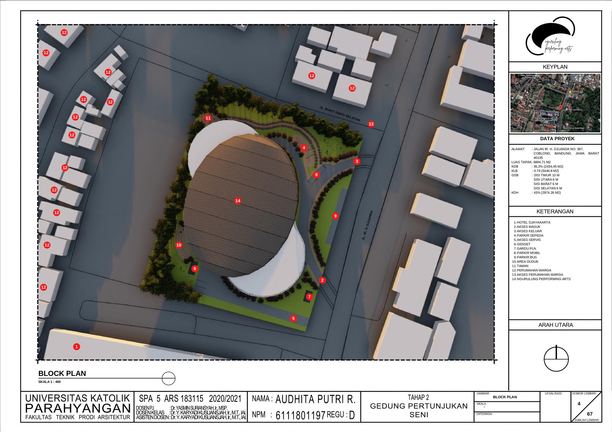 Dago area which is a tourist area and strong traditional Indonesian culture, this art performance building is designed with a function as a place for music and dance performances, especially traditional music that is packaged in a modern way such as the angklung orchestra and combined with traditional dances from various regions in Indonesia. The location of the site in the Dago area which is surrounded by tourist, commercial, and hospitality attractions is one of the potentials for the construction of this performing arts building. Visitors who can cover the city to outside the city can the potential to introduce and continue to preserve traditional culture by appreciating traditional artists.