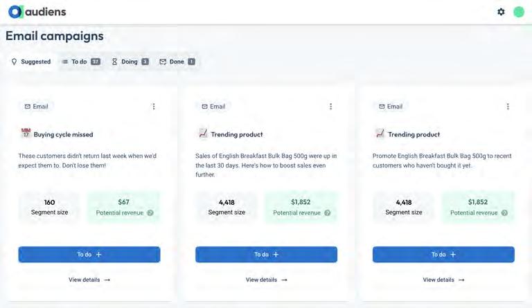 Audiens then suggested email campaigns for biggest impact. Real suggestions