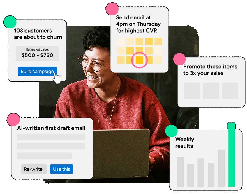 Its built-in AI (GPT-4) wrote a first draft subject line and body text. It gave the best time to send too. A few clicks, and it was all in Klaviyo.