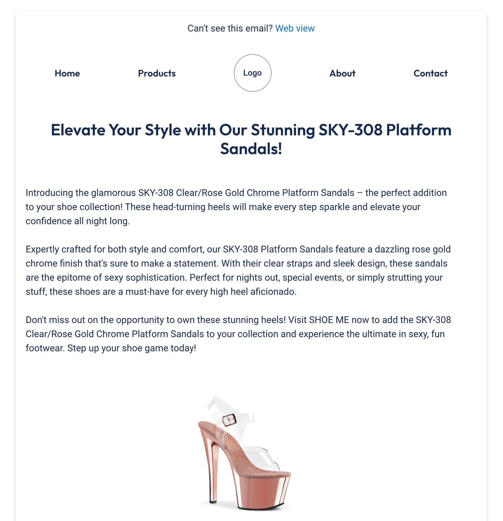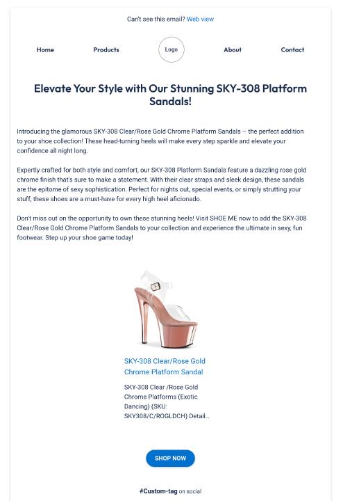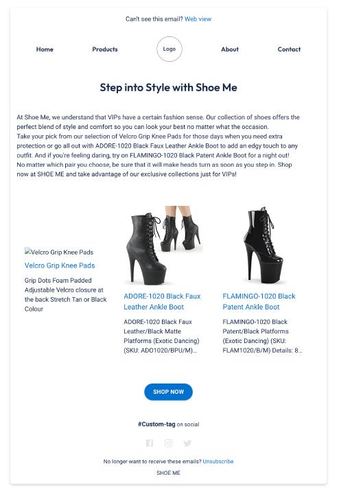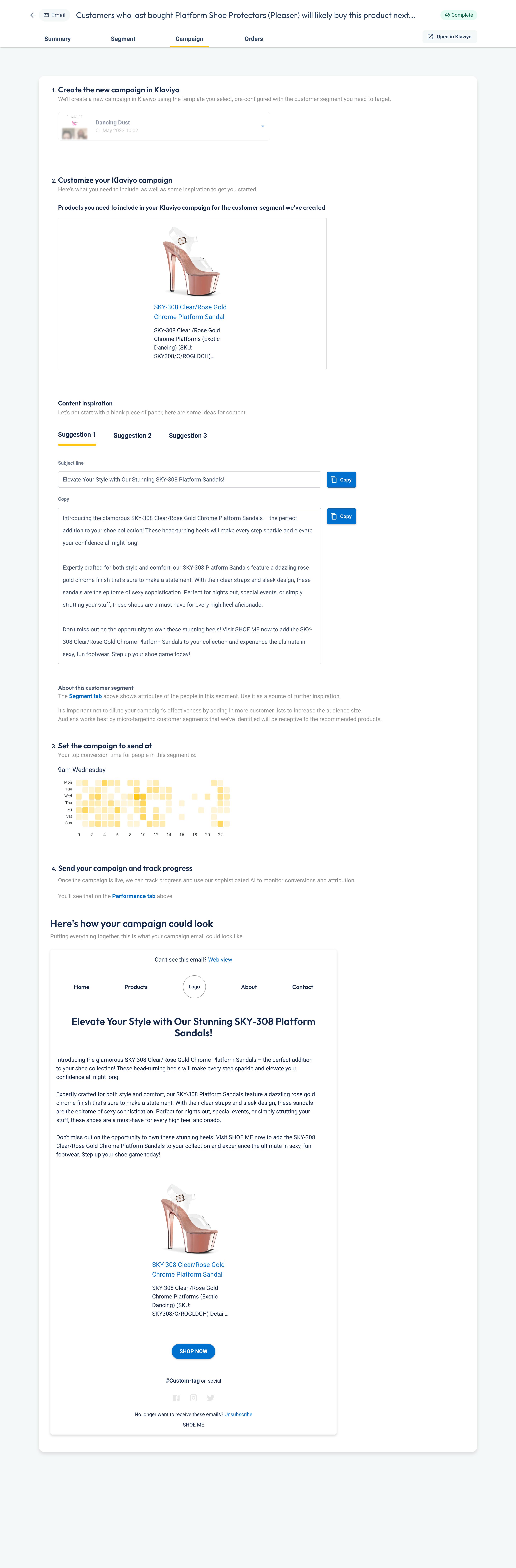 When transferring this campaign to Klaviyo, the email was autowritten with AI, and used SHOE ME’s previously-built Klaviyo template.