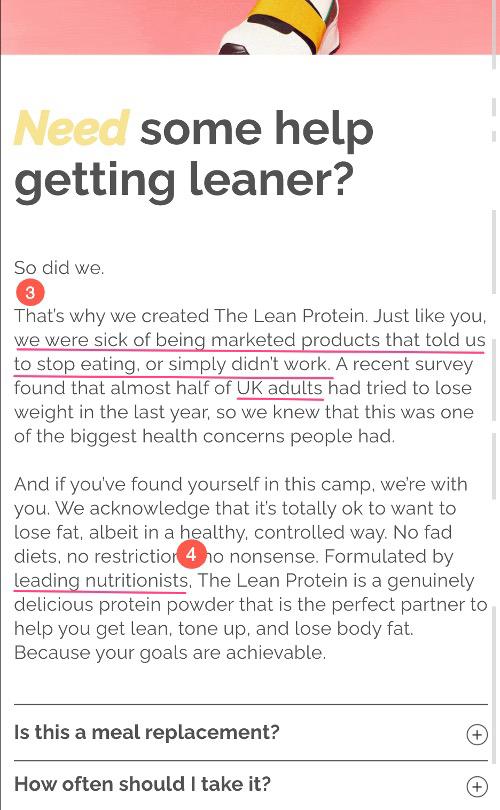 Here’s a description of what the product does. This would be a great place to decide their awareness level of protein supplements. E.g.