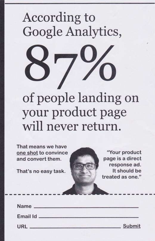 Think of your product page like an old direct-response ad. You have one shot, one chance to grab them.
