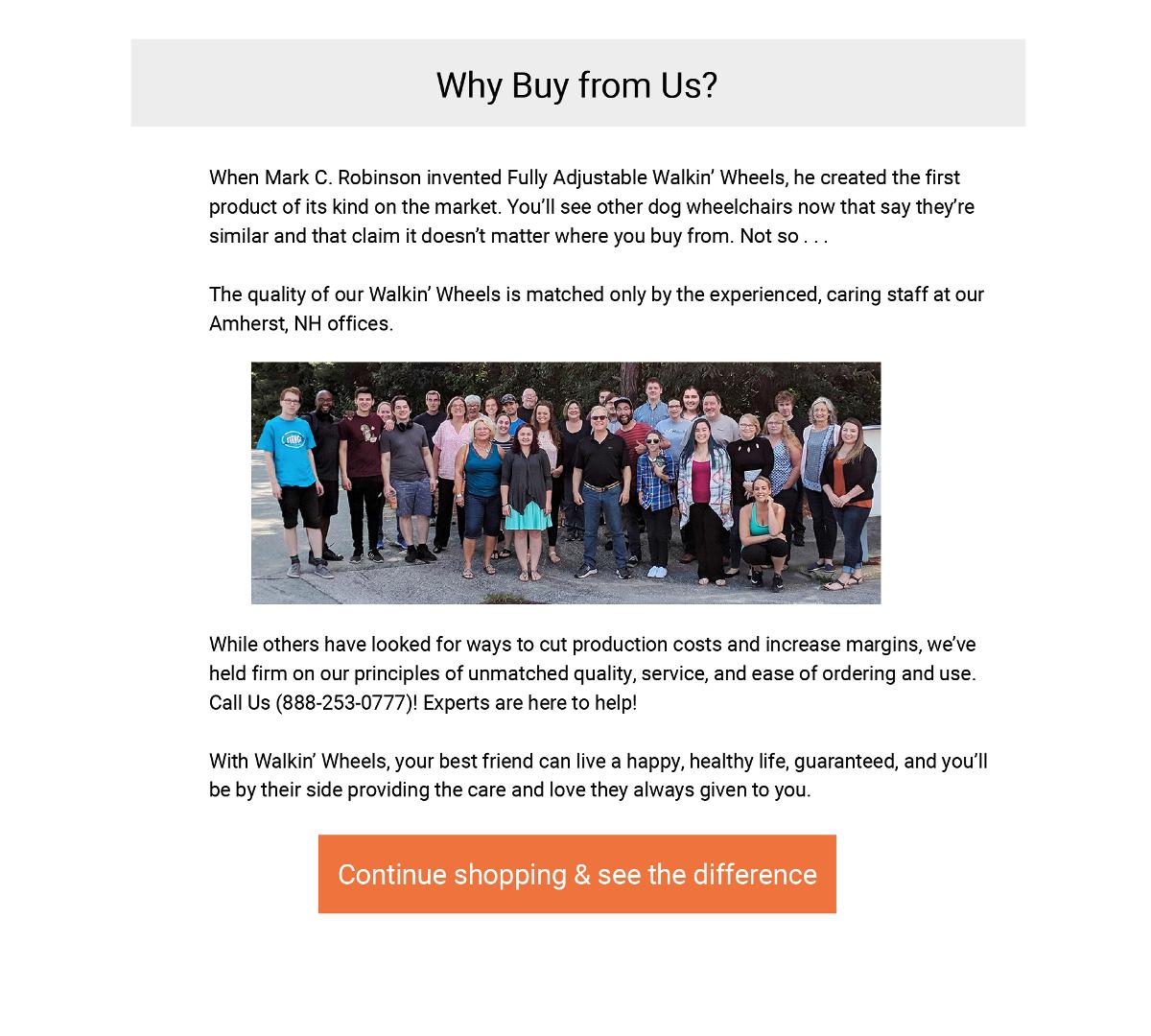 The new product page also included a ‘why buy from us?’ CTA button which opened in a popup.