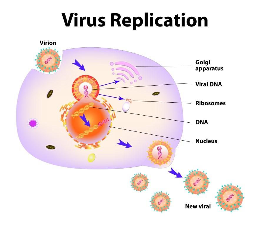 The viral life cycle is different, depending on the viral species. Suffice it to say, however, that there are six different steps involved in the viral replication cycle. These include the following: