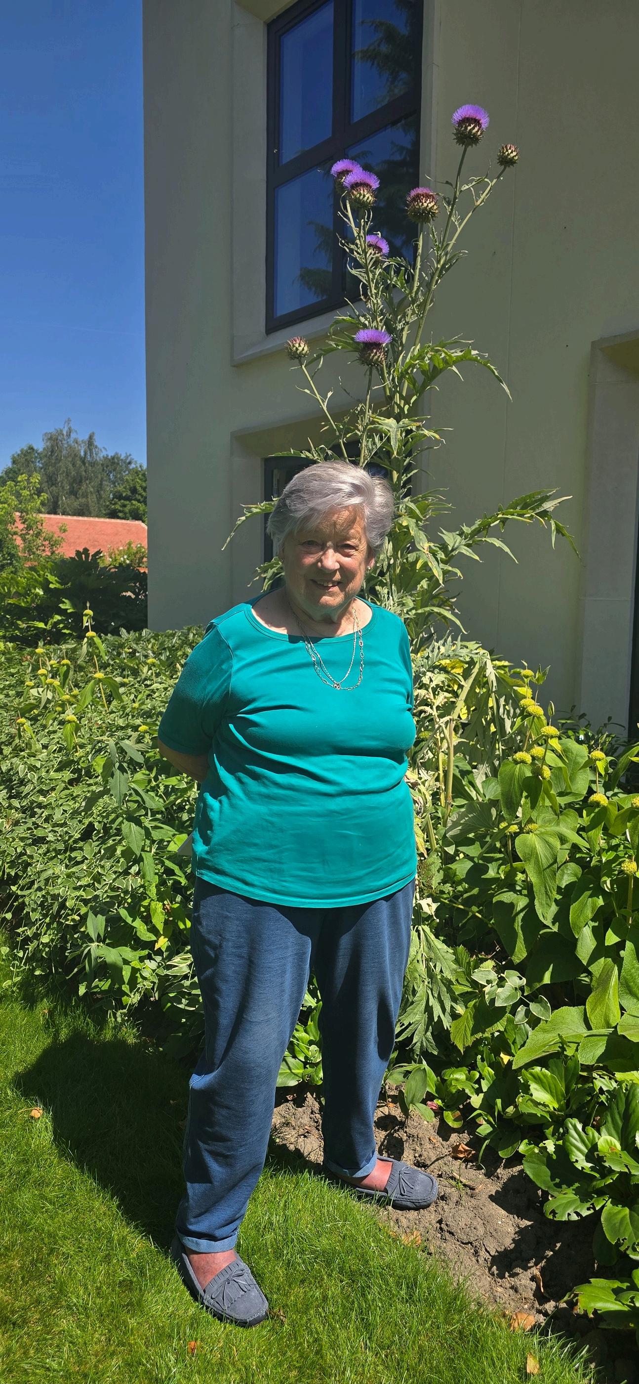 We later moved to a larger house with a lovely garden. It was transplanted and it was very happy It grew to 8ft Then when we moved again I gained permission and moved both the Wisteria (grown from seed) and the Artichoke to Audley Fairmile Both are still alive but the now famous artichoke is possibly as much as 12ft high! It is SO happy here at Audley Fairmile, as I am too!