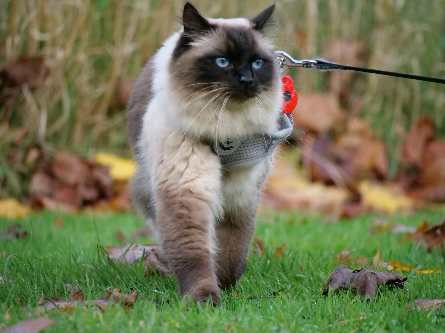 Oberon arrived at Clevedon as a 12-week-old kitten and took to harness life immediately “he was out on his lead from day one ” Now nearly three, he’s well known for his very early walks, particularly on Ilkley Moor “In the summer I take him out at 4 30am,” Fiona explains “In winter, it’s a tad later and by torchlight.”