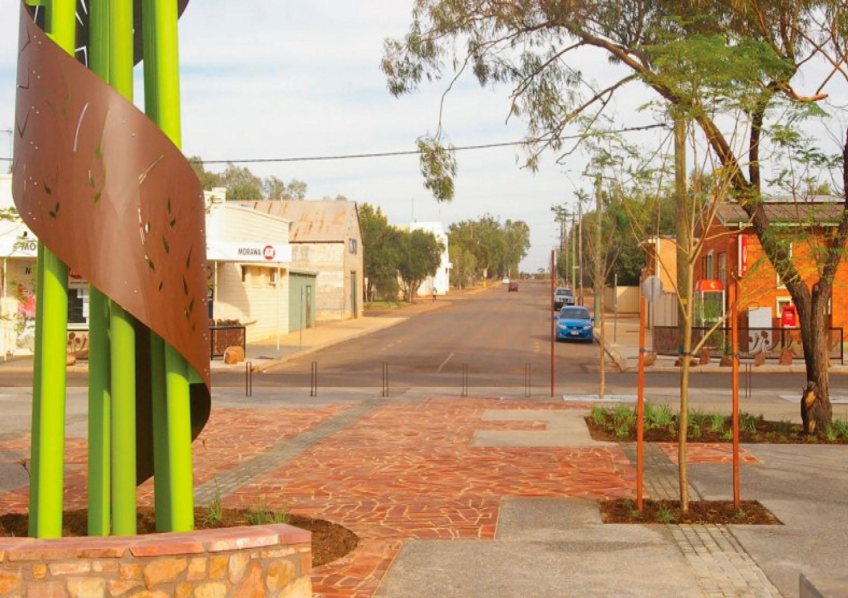 Thefollowingsectionexploresspatialdesign interventions – namelyrejuvenatingmainstreets, introducingcivicplazas,andrepairingandconnectingtoenvironmentalassets – thatlocalgovernments havedeployedinabidtoovercomethepsychologicalbarrierstopopulationdecentralisationtosuch towns.InAustralia,manypeopleregardinland ruraltownsassufferingfromanimageproblem. Dwellersinlargerurbancentrestendtoviewcountry townsasboring,shortofattractions,havinglesseducationalopportunities,andprovidingalimitedsocial scene(Lonsdale 1972,327).Asonecitywriterputit, ‘there’snothingtodointhecountrytownoncethe pubsshut.’ Suchattitudesareobviouslybiased,but theyhighlightanimportantpsychologicalcomponenttotheproblemofachievingdecentralisation (Lonsdale 1972,327).