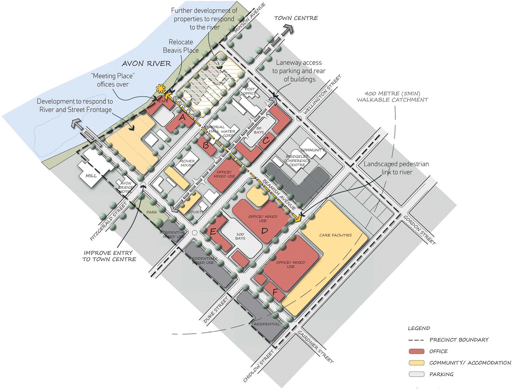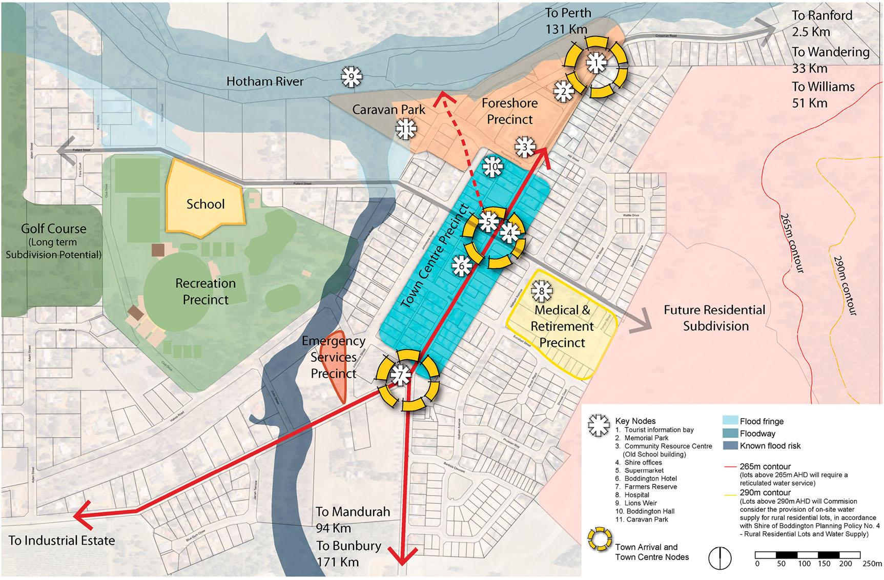 Note:This figurefromtheBoddingtonSuperTownGrowthPlanshowskeynodesandlinkagesalongtheupgradedmainstreet,BannisterRoadwhichplannersregardedas ‘lackinginvibrancyoraclearlyrecognisablefocalpoint’ (drawingcourtesyofHamesSharley).