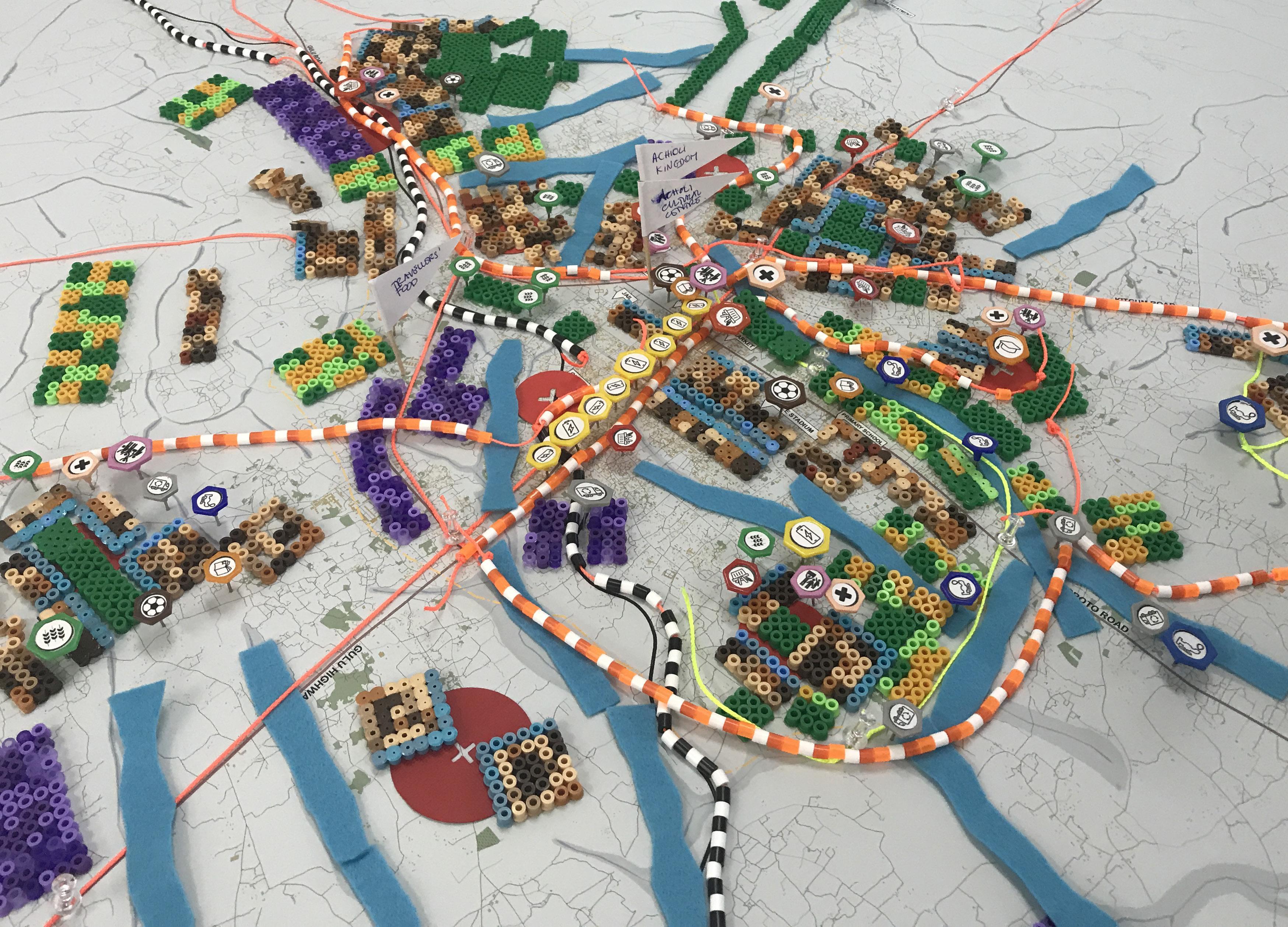 Participants were able to easily grasp the game design and began identifying locations for pieces relatively quickly. Gameplay flowed from the beginning in most instances. There was one round where the engagement was inhibited early on and this was due to the lack of any group participant having specific detailed knowledge of the city layout. Skilled facilitation was key in ensuring game progression, particularly during the early stages (Figure 4-5)