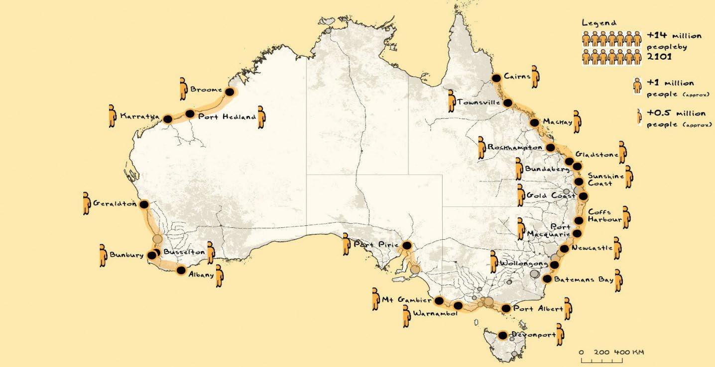 Population growth in Melbourne and Sydney, Australia’s two largest state capitals, has, in part, caused them to become congested and expensive. This scenario responded to this situation by distributing population growth to the remaining six state and territory capitals, projecting population increases by over 2 million people in each by 2101 (Figure 3). In addition, this scenario was informed by the Federal Government’s current direction to ease population growth pressures in the largest state capitals (Australian Government, 2019b).