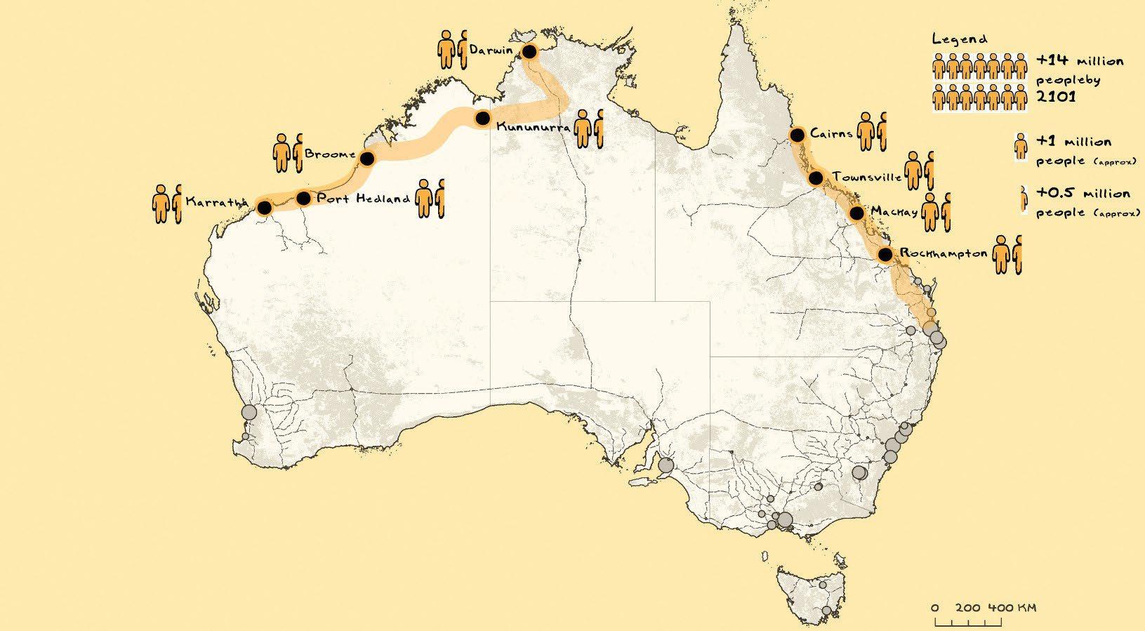 here to be exploited” and “Yes, I like this. Bold new growth corridors with their own identities”. Others regarded population growth as leading “to the social, cultural and economic revitalisation of northern Australian cities” (19 comments). Finally, some respondents believed substantial population growth in the north of Australia would encourage sustainable, resilient, environmentally responsive city-building and design (10 comments):
