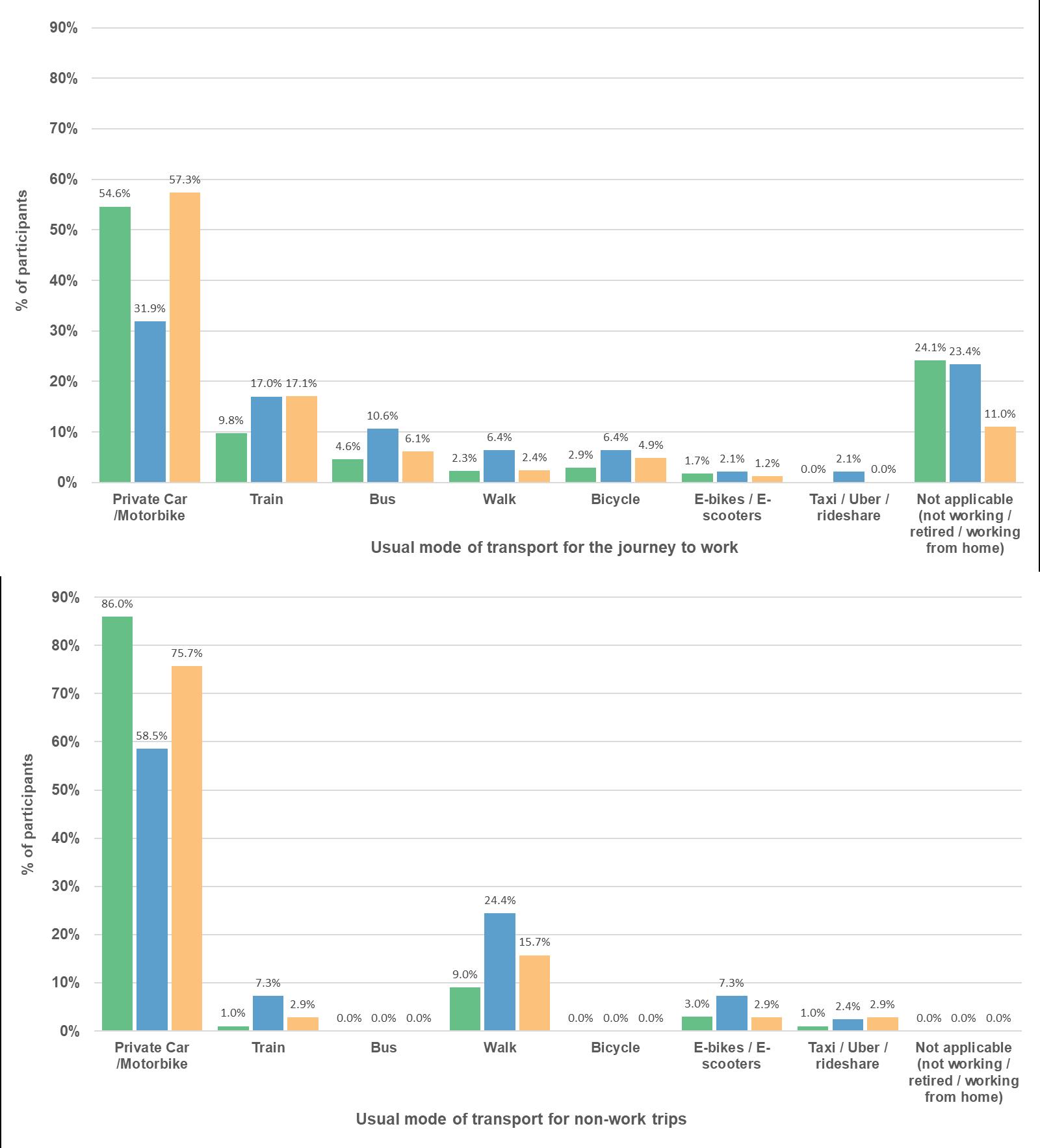 For the primary or largest portion of your journey or commute to work, what mode of transport do you usually take?
