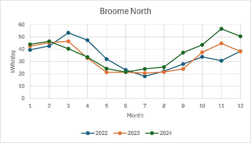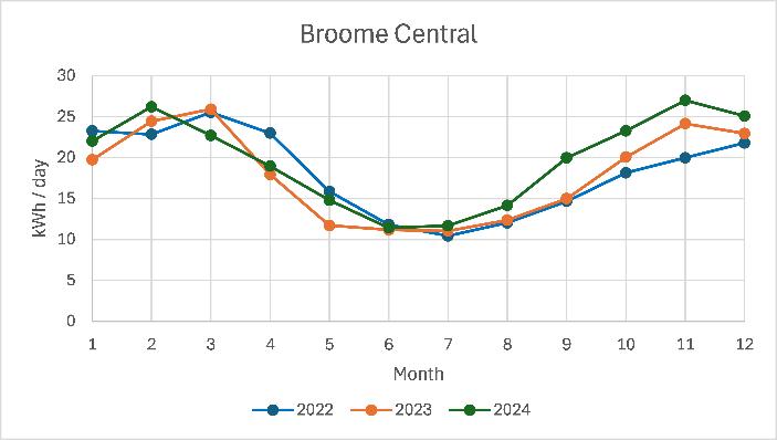 Monthly electricity consumption statistics were obtained from Horizon Energy for the houses in the case study precincts in Broome for each month of 2022-2024.