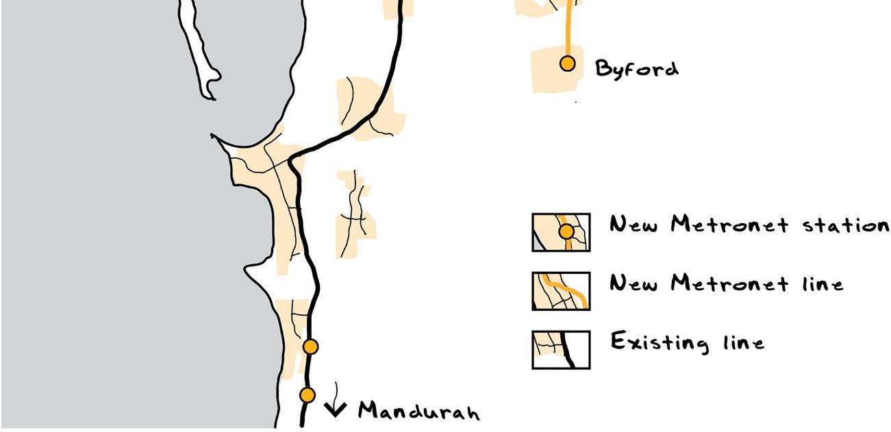 Such sentiments were expressed concerning the lack of connection between the Rockingham and Mandurah (Figure 8) stations (on the southern suburbs railway) to their existing town centres (Transport Professional 1), and the creation of transit stops in inhospitable locations such as Glendalough an inner-city area with substantial industry (Design Professional 2).