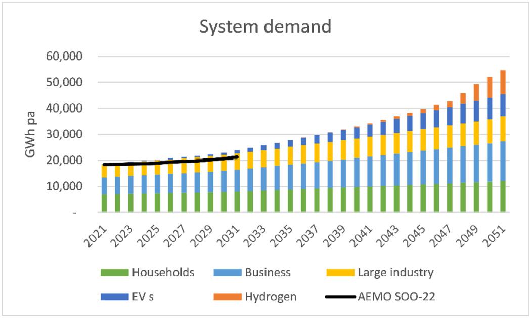 TheseassumptionswerecombinedwithAEMO’s2022 ElectricityStatementofOpportunities(ESOO)forthe SWIS[16],whichcontainsatenyearoutlook,toproducea disaggregateddemandprojectionfortheSWISto2051 (Fig.6)whichwasusedinthemodel.
