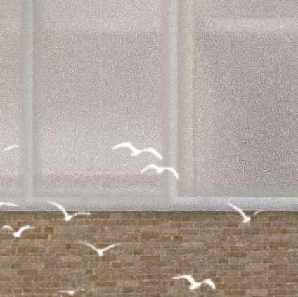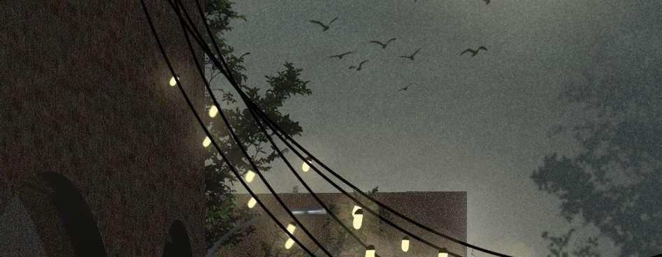 Alightweightpolycarbonatefacadesitsabovethe heavy brick base, emohasising and celebrating the art of eating together as a community while illuminatingduringnighttime,givingthecommunity a sort of lighthouse’ at the once unsafe corner.