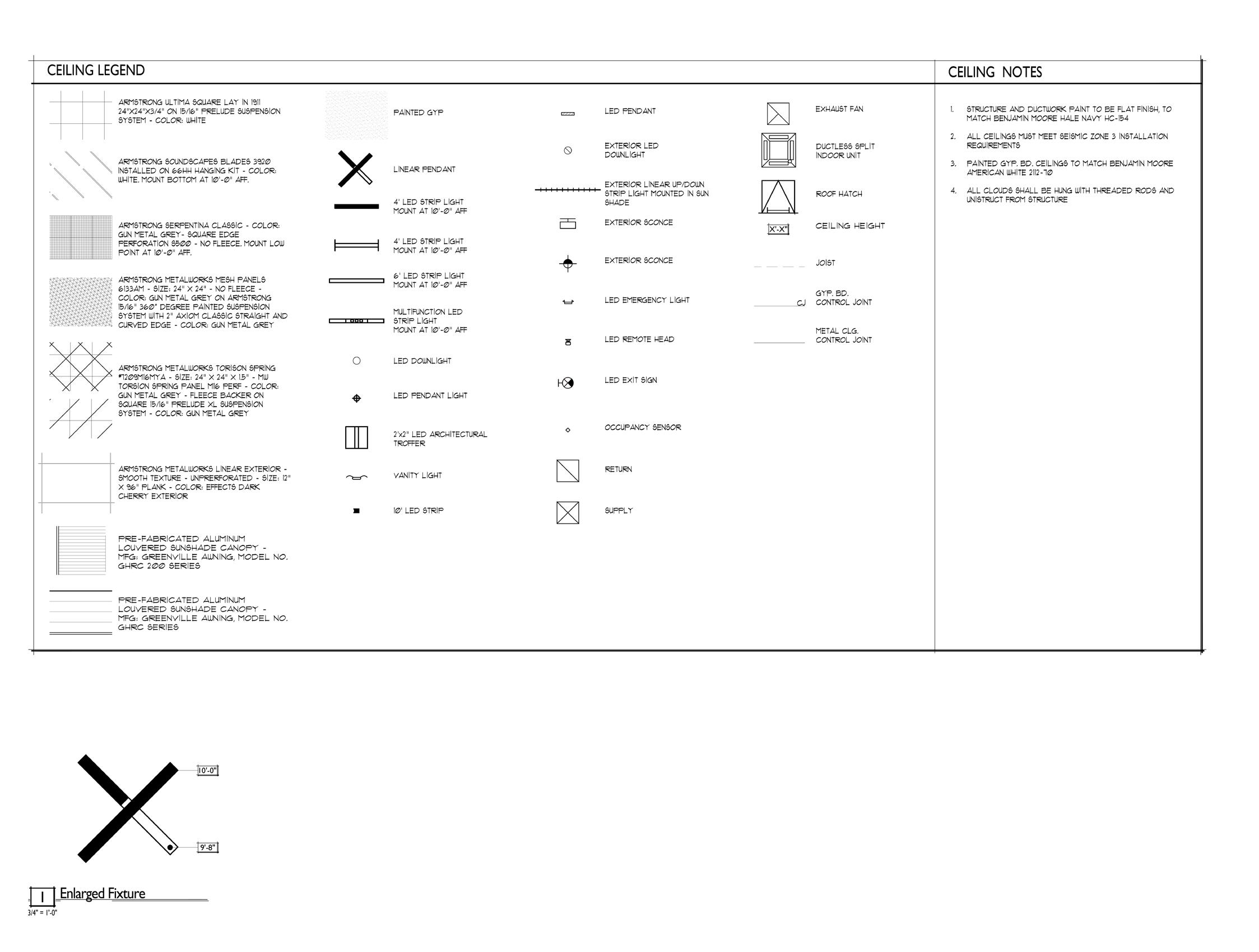 Reflected Ceiling Plan FD FD FD FD FD FD FD FD ← ← → → ← → ← ← → → ← ← → → ↓ ↑↑ ↑ ↓↓ → → → ↑ 33 33 OP 8'-0" 8'-0" 8'-0" 5'-8" 2'-9 1/2" 2'-5" 5'-5" EQ 2'-5 1/2" 8'-0" TYP GYP 10'-0" GYP 9'-0" ACT-2 12'-0" GYP 11'-0" GYP 12'-0" ACT-1 10'-0" GYP 9'-0" ACT-1 10'-0" GYP 10'-8" GYP 10'-8" GYP 10'-0" 3 3 3 33 3 3 D D 1 12 2 OP GYP 10'-0" FA FA 4 GYP 10'-0" GYP 10'-0" GYP 9'-0" GYP 9'-0" ACT-1 10'-0" 5 5 5 9'-1 1/2" 5'-0 1/2" 4'-1" 6 6 6 R R R R FLEX 134 PHONE 131 CONFERENCE 138 BROADCASTING 143 FLEX 140 BREAK 100 OFFICE 137 OFFICE 142 OFFICE 141 OFFICE 146 OFFICE 147 COFFEE 149 COAT LUGGAGE CLOSET 151 OFFICE 114 OFFICE 113 OFFICE 112 OFFICE 111 FILE ROOM 110 HUDDLE 109 CONFERENCE 108 VESTIBULE 150 OFFICE 136 HUDDLE 133 IT 127 MENS 123 WOMENS 122 STORAGE 105 MOTHER'S ROOM 104 OFFICE 107 RECEPTION 102 ELEC CLOSET 125 COLLAB 106 MAIL COAT CLOSET 103 HUDDLE 115 WELLNESS 116 ELEC CLOSET 152 IT STORAGE 128 LOCKERS 126 IT WORK ROOM 129 COLLAB 135 PHONE 132 OPEN OFFICE 145 VESTIBULE 124 COFFEE 117 5'-7" 5'-7" 1'-3" 2'-0 1/2" TYP D D D DD D 2 3 FA 33 STORAGE 130 8'-0" TYP 5'-0 1/2" 5'-9" 5'-9" 8'-5" 2'-11" 5'-9" 8 7 4'-0" D D D D ACT-1 12'-0" DDDD D D DDD D DD D DD DDDDDD D 2 2 2 2 2 2 N NN N 33 333 3 3 D D D DD D AA2 DA3 DA2 DA1 DA1 9 9 9 10 9 DA4 DA4 10 DA5 DA5 DA5 DA5 R R E R R R R DD D EQ 5'-9 1/2" 11 3'-0" 7'-5" 7'-5" 3'-0" 3'-0" 8'-5" 4'-3 1/2" 8'-0" TYP 12 1 EQ EQ GYP 10'-0" GYP 9'-0" GYP 10'-0" GYP 10'-0" D IBR (CONFERENCE) 144 D 5'-0" 28'-10" 2'-9 1/2" EQ 7'-5 1/2" 7'-5 1/2" 7'-5 1/2" 7'-5 1/2" 7'-5 1/2" EQ 7'-5 1/2" 7'-5 1/2" 7'-5 1/2" 7'-5 1/2" EQ COPY 153 2 2 2 2 2 13 E 5'-0 1/2" 8'-3 12" TYP 5'-0 1/2" FUTURE OPEN OFFICE 154 EQ EQ 14 BREAK/COLLAB 139 5'-1" 7'-7" 3'-0" 6'-0" 4'-2 1/2" 7'-7" 5'-11" 2'-11 1/2" D D 15 TRAINING 120 TRAINING 121 FURNITURE STORAGE 118 COLLAB 119 FD FD FD FD FD FD FD FD ↑↑ ↓↓ → 33 33 OP 8'-0" 8'-0" 8'-0" 2'-9 1/2" 2'-5" 5'-5" EQ 2'-5 1/2" 8'-0" TYP GYP 10'-0" GYP -0" ACT- 12'-0" GYP 11'-0" GYP 12'-0" ACT- 10'-0" GYP 9'-0" ACT-1 10'-0" GYP 10'-8" GYP 10'-8" GYP 10'-0" 3 D D 12 OP GYP 10'-0" FA FA GYP 10'-0" GYP 10'-0" GYP -0" GYP 9'-0" ACT- 10'-0" 5 9'-1 1/2" 5'-0 1/2" 4'-1" R R FLEX 134 PHONE 131 CONFERENCE 138 BROADCASTING 143 140 100 OFFICE 137 OFFICE 141 146 147 149 COAT LUGGAGE CLOSET OFFICE OFFICE 113 OFFICE OFFICE 111 FILE ROOM 110 HUDDLE 109 108 150 OFFICE 136 HUDDLE 133 MENS WOMENS 105 104 107 102 ELEC CLOSET 125 COLLAB 103 HUDDLE WELLNESS 116 ELEC CLOSET 152 128 LOCKERS 126 WORK ROOM 129 COLLAB PHONE 132 OPEN OFFICE 145 VESTIBULE 124 117 5'-7" 5'-7" 1'-3" 2'-0 1/2" TYP D D DD D 2 33 STORAGE 130 8'-0" TYP 5'-0 1/2" 8'-5" 2'-11" 5'-9" 7 4'-0" D D D D ACT- 12'-0" DDDD D D DDD D DD D DD DDDDDD D 2 2 2 2 NN 33 333 D D D DD D AA2 DA3 DA2 DA1 DA1 9 10 9 DA4 DA4 10 DA5 DA5 DA5 DA5 R R R R R DD D EQ 5'-9 1/2" 11 3'-0" 7'-5" 7'-5" 3'-0" 3'-0" 4'-3 1/2" 8'-0" TYP 12 1 EQ EQ GYP 10'-0" GYP 9'-0" GYP 10'-0" GYP 10'-0" D IBR (CONFERENCE) D 5'-0" 28'-10" 2'-9 1/2" EQ 7'-5 1/2" 7'-5 1/2" 7'-5 1/2" 7'-5 1/2" 7'-5 1/2" EQ 7'-5 1/2" 7'-5 1/2" 7'-5 1/2" 7'-5 1/2" EQ COPY 13 5'-0 1/2" 8'-3 12" TYP 5'-0 1/2" FUTURE OPEN OFFICE EQ EQ 14 BREAK/COLLAB 139 5'-1" 7'-7" 3'-0" 6'-0" 4'-2 1/2" 7'-7" 5'-11" 2'-11 1/2" 15 TRAINING TRAINING FURNITURE STORAGE COLLAB 119 3" RECESSED DOWNLIGHT (F) SPEC: ELITE, ER3-2000L-DIM10-MVOLT-WD-30K-90-ER3-TL-1302-WHT WATTAGE: 26.1 NEW GYP BD CEILING (EXISTING @ RECEPTION 102) NEW GRID & TILE SPEC: ARMSTRONG DUNE SQUARE LAY-IN 9/16" BEVELED TEGULAR 1775 W/SUPRAFINE XL 9/16 SUPENSION SYSTEM, 24" X 24 X 5/8", WHITE EXIT SIGN W/ BATTERY BACKUP NOTE: STEM MOUNT @ OTS LOCATIONS SPEC: EVENLITE, TLXEMGW MOUNTING HEIGHT: TO MATCH EXISTING EXISTING TO REMAIN SINGLE POLE SWITCH RE-CIRCUIT AS REQUIRED. RE-SWITCH AS INDICATED (LOCATED AT 48" AFF, UNO) 2' 4' LED DIRECT/INDIRECT LAY-IN (C) SPEC: HEW, LT-24-L40/830-AF-DRV-UNV WATTAGE: 32W OPEN TO STRUCTURE 4" SUSPENDED PENDANT @ OTS (B) SPEC: DMF LIGHTING, DC4-C4-S-L-D-30-WF-30-BK-O MOUNTING HEIGHT: 12'-0" AFF WATTAGE: 40W RECESSED LINEAR FIXTURE (A1-8,A1-20) SPEC: FINELITE, HO4-RO-(LENGTH)-B-830-OPN-277-SC-SE WATTAGE A1-8: 35.2W WATTAGE A1-20: 88W DECORATIVE PENDANT (G) SPEC: INSIGHT LIGHTING, ADB-68-30K-DI-ACA-48-DIM-TBL-TBL-LV MOUNTING HEIGHT: 7'-0" AFF WATTAGE: 58.1W ACOUSTICAL CLOUD SPEC: RITZ INTERIORS -CUSTOM, COLOR RA-04 MOUNTING HEIGHT: SEE 1 AND 3/A1-33 FOR HEIGHTS CONTACT: ANDY RITZ 678.878.0404 ANDY@RITZINTERIORS.NET ACOUSTICAL BAFFLE SPEC: RITZ SLIMZ #1, COLOR RA-05 @ OPEN OFFICE 145 DEPTH: 9" MOUNTING HEIGHT: 13'-0" AFF CONTACT: ANDY RITZ 678.878.0404 ANDY@RITZINTERIORS.NET (SEE 1/A1-32 FOR OVERALL DESIGN, SEE SUPPLEMENTARY DOCUMENTS FOR EXACT LAYOUT AND COORDINATION. SUSPENDED LINEAR FIXTURE (A-16,A-24,A-28,A-32,A-44) SPEC: FINELITE, HO4-D-RO-(LENGTH)-B-830-TG-OPN-277V-FA-OE MOUNTING HEIGHT: 12'-0" AFF WATTAGE A-16: 70.4W WATTAGE A-24: 105.6W WATTAGE A-28: 123.2W WATTAGE A-32: 140.8W WATTAGE A-44: 193.6W DIMMER -W Y3 RELOCATED PENDANT NOT IN SCOPE RELOCATED LED 1" RECESSED DOWNLIGHT (N) SPEC: ELITE, A1R-F-1102-800L-MD-30K-90-W-WH-A1R-LED-10W-DIM10-MVOLT-BP30 WATTAGE: 10W WALL GRAZER FIXTURE (H) SPEC: FINELIGHT, HP-WG-6W-4D-H-(LENGTH)-830-277-SC-SC-SSA-FEL-FER WATTAGE: LED COVE LIGHT FIXTURE (M) SPEC: ELITE, 1-LSC1-550LP-DIM10-MVOLT-120X120D-30K-90-CL-SI WATTAGE: 5.8W NOTE: CONTACT SUMMER DAVIS 770-449-7045 SDAVIS@SESCOLIGHTING.COM FOR ALL LIGHTING FIXTURES, UNO EXISTING SKYLIGHT DECORATIVE PENDANT @ RECEPTION (O) SPEC: SISTEMALUX, 1174-M-BO-20-930-L-SP-UNV-02-D10 MOUNTING HEIGHT: 6'-8" AFF WATTAGE: 905W NEW GRID & TILE SPEC: ARMSTRONG BACKSTAGE NOIR 15/16" SQUARE LAY-IN 1318 W/PRELUDE XL 15/16" SUSPENSION SYSTEM, 24" X 24" X 3/4", BLACK FA CEILING MOUNTED FIRE ALARM NOTE: STEM MOUNT @ OTS LOCATIONS FINISH: RED LED STRIP FIXTURE @ ELEC CLOSET 125 AND 151 (Q) SPEC: WILLIAMS 75 LED NARROW STRIP MOUNTING HEIGHT: 12'-0" AFF WATTAGE: 19.7W DECORATIVE SCONCE @ MOTHER'S ROOM, WELLNESS ROOM, ND PHONE ROOMS (L) SPEC: SAL, S3A20-L09-30-PT-BLK MOUNTING HEIG