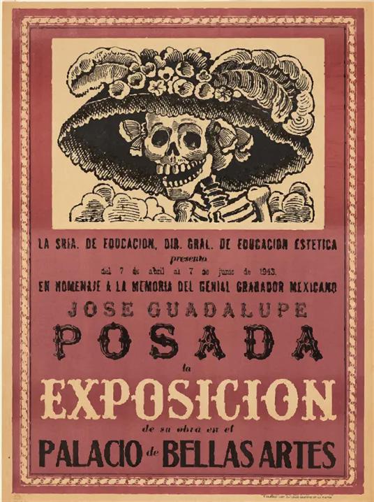 A monumental wall adorns both the first and second levels of the hotel, creating a visual connection between the spaces. The abstract marks across the surface echo the texturing and etching techniques of printmaking. In addition, large mural illustrations of skeletons pay direct homage to greats such as José Posada.