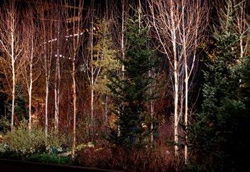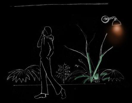 Pathside interventions are placed alongside the actual walking surface. They may be contained within their own space, or they may interact with the walking surface by casting lights or shadows. These interventions focus on texture and immersive or playful lighting installations. Night gardens emphasize use of strongly textured foliage, interesting branching structures, pale foliage and blooms, and well placed uplighting and accent lighting. Immersive